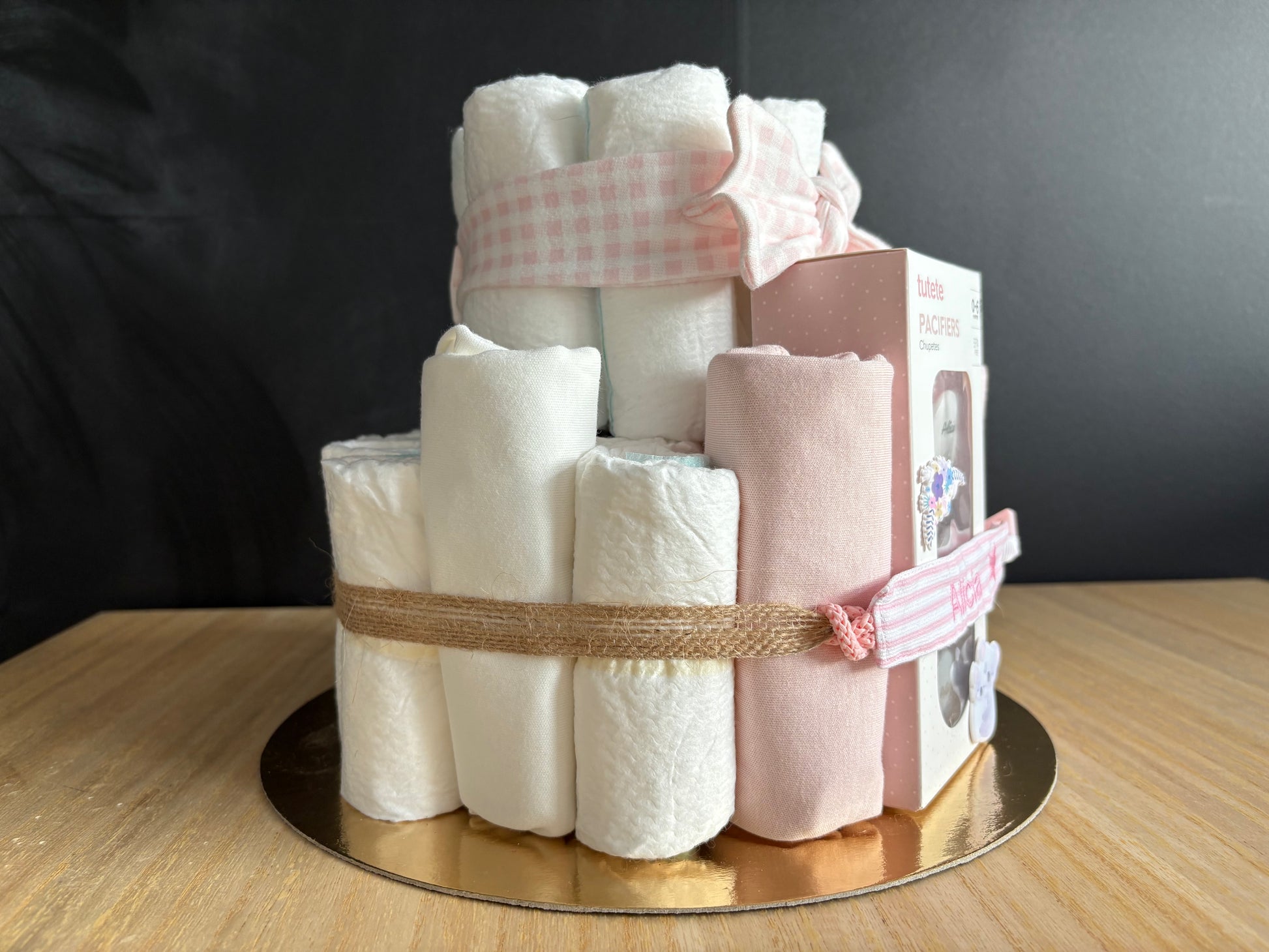 🎀 Tarta de pañales “Alicia” – Edición personalizada con amor