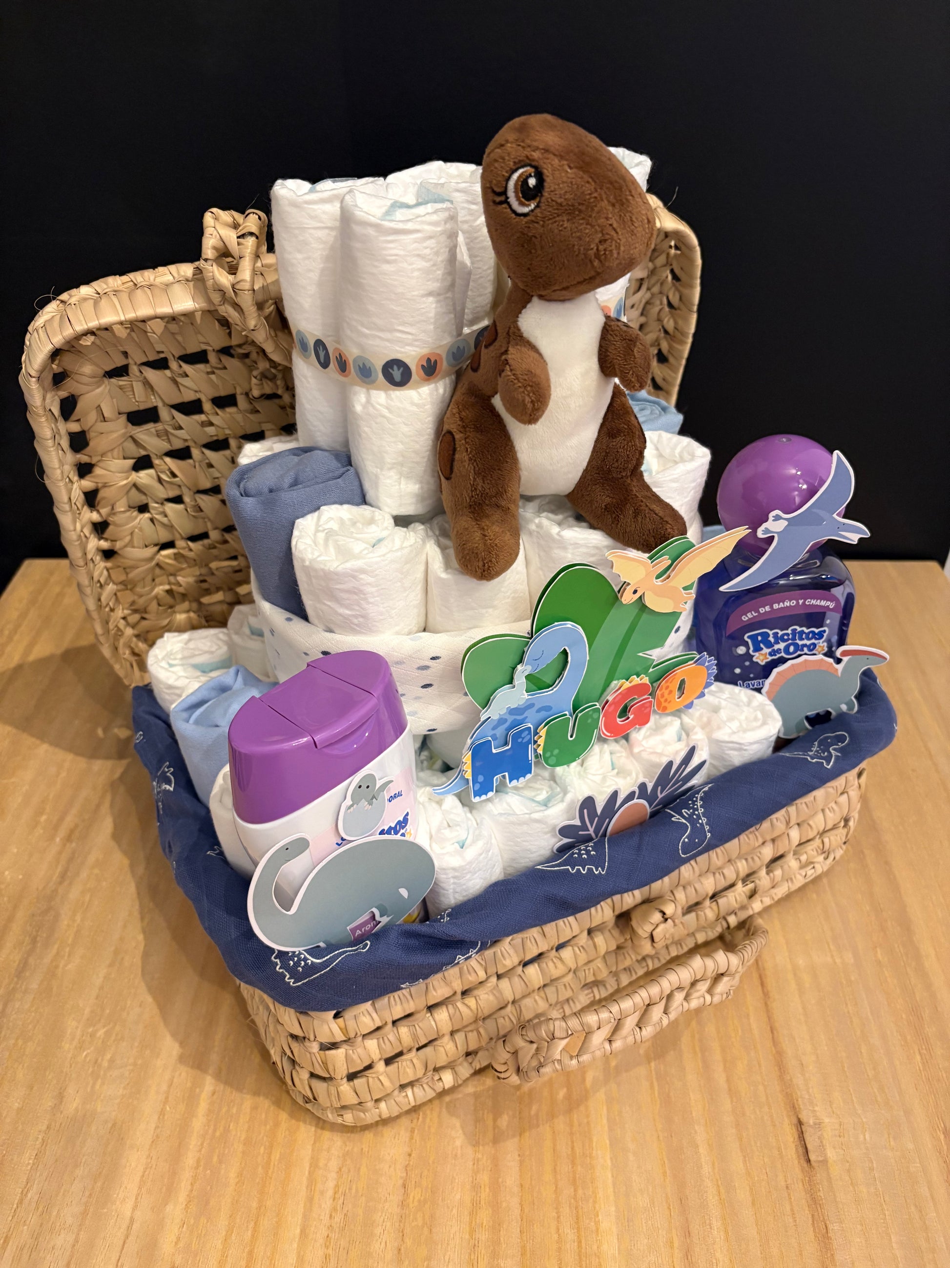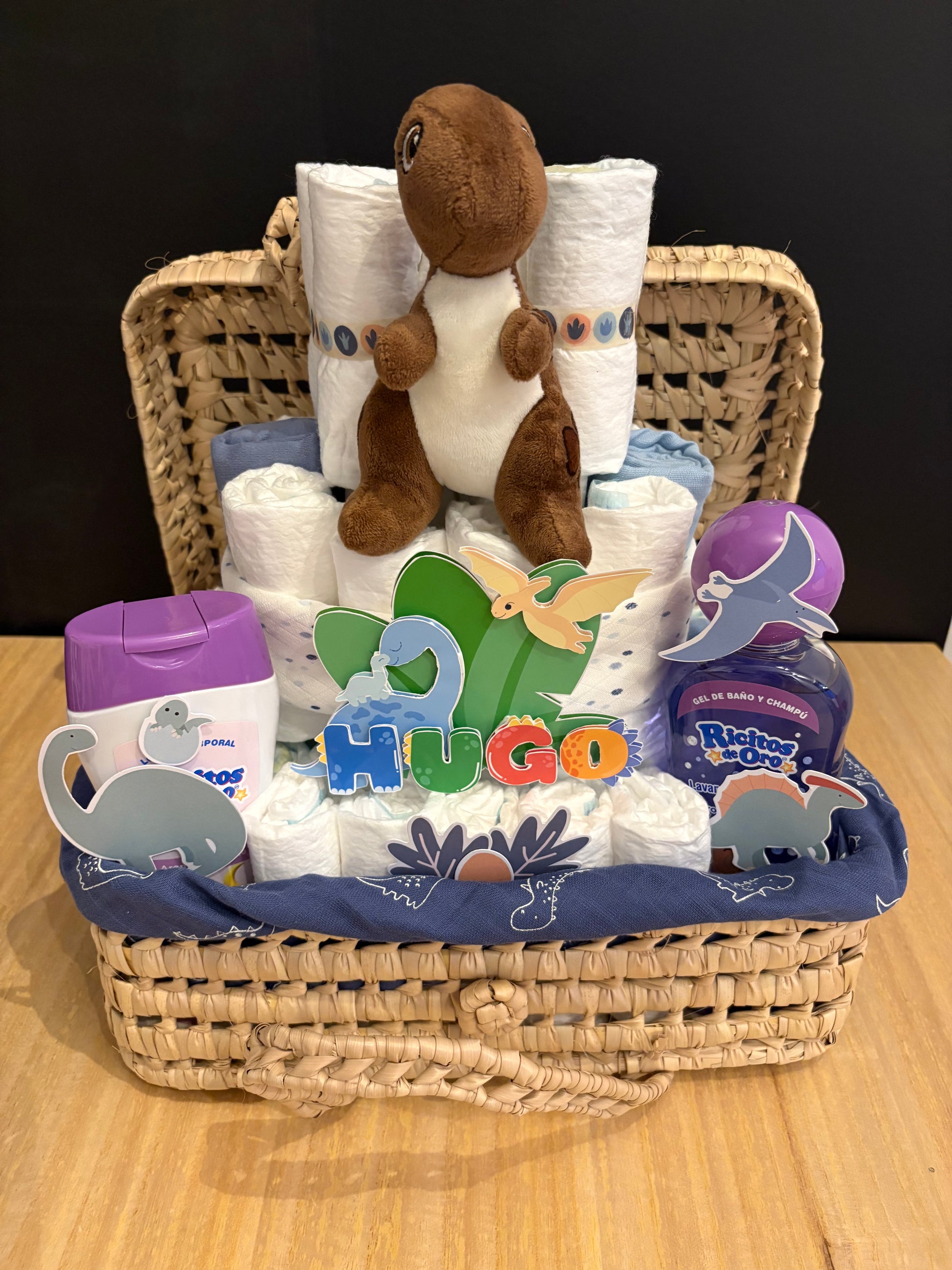 ¡La prehistoria nunca fue tan adorable! Nuestra tarta “DinoHugo Aventura Jurásica” está diseñada para conquistar a los pequeños exploradores con un mundo lleno de dinosaurios, ternura y productos útiles para el cuidado diario del bebé.